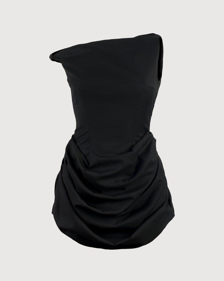 One-shoulder wool dress with a fitted waist, gathered and draped hip, and concealed zip closure. Fully lined for a flawless silhouette.