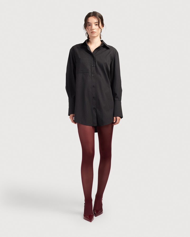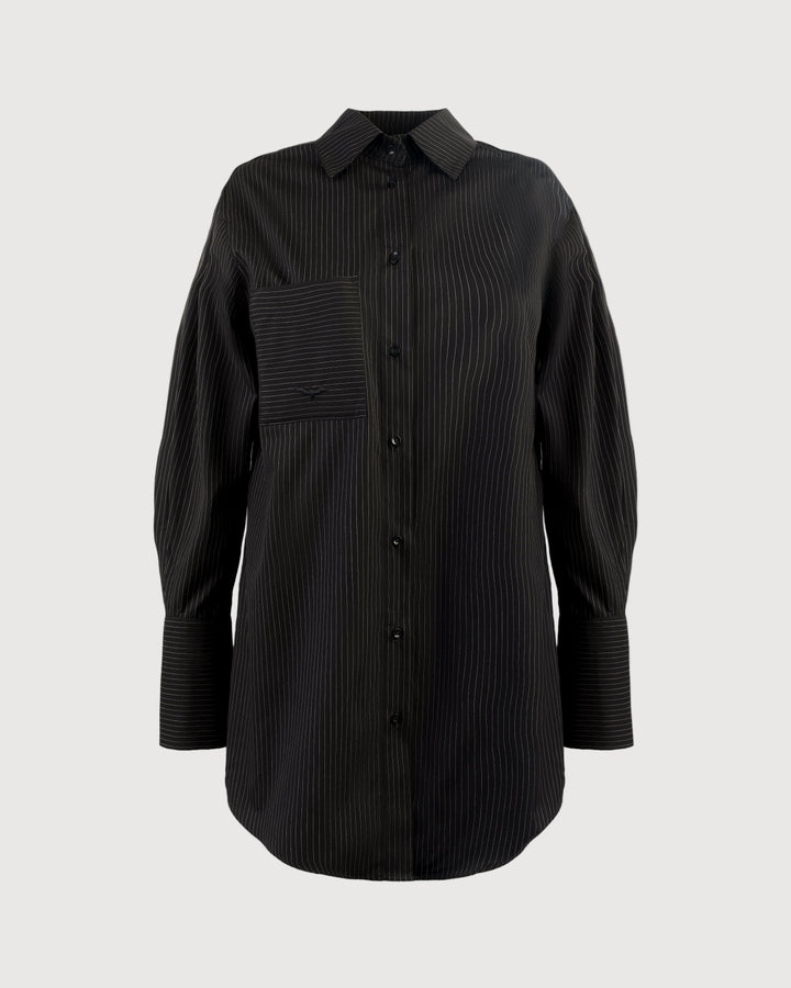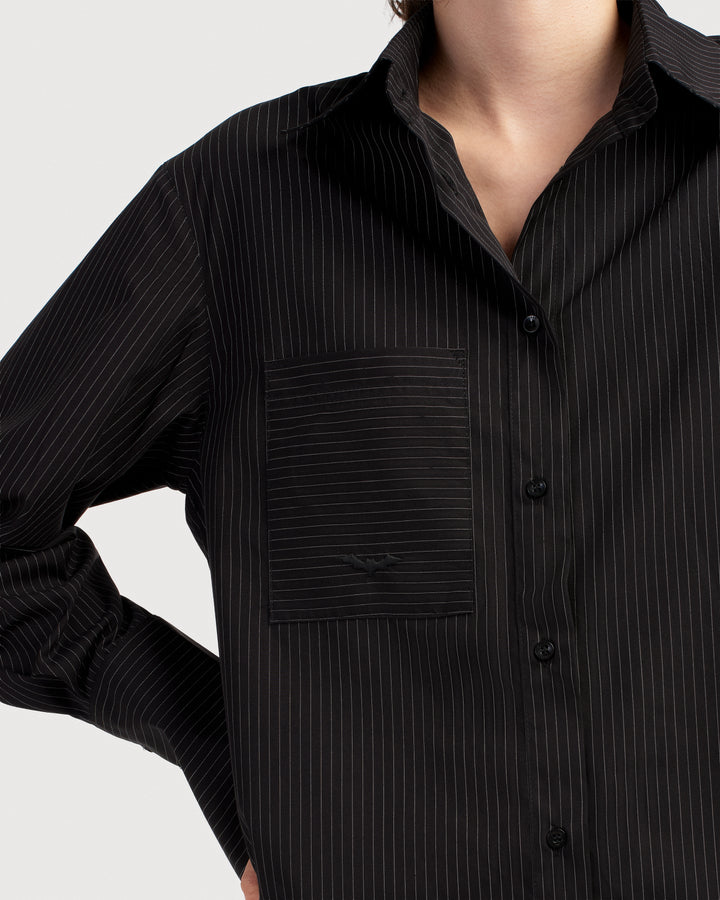 Straight fit with a pointed collar, rounded sleeves, buttoned cuffs with pleats, and delicate embroidery on the pocket — the Umbra shirt redefines effortless elegance.